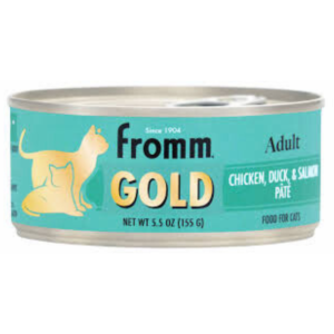 Adult Gold Chicken, Duck, & Salmon Pâté is a premium wet cat food with a smooth texture, made from quality proteins to support healthy adult cats every day.