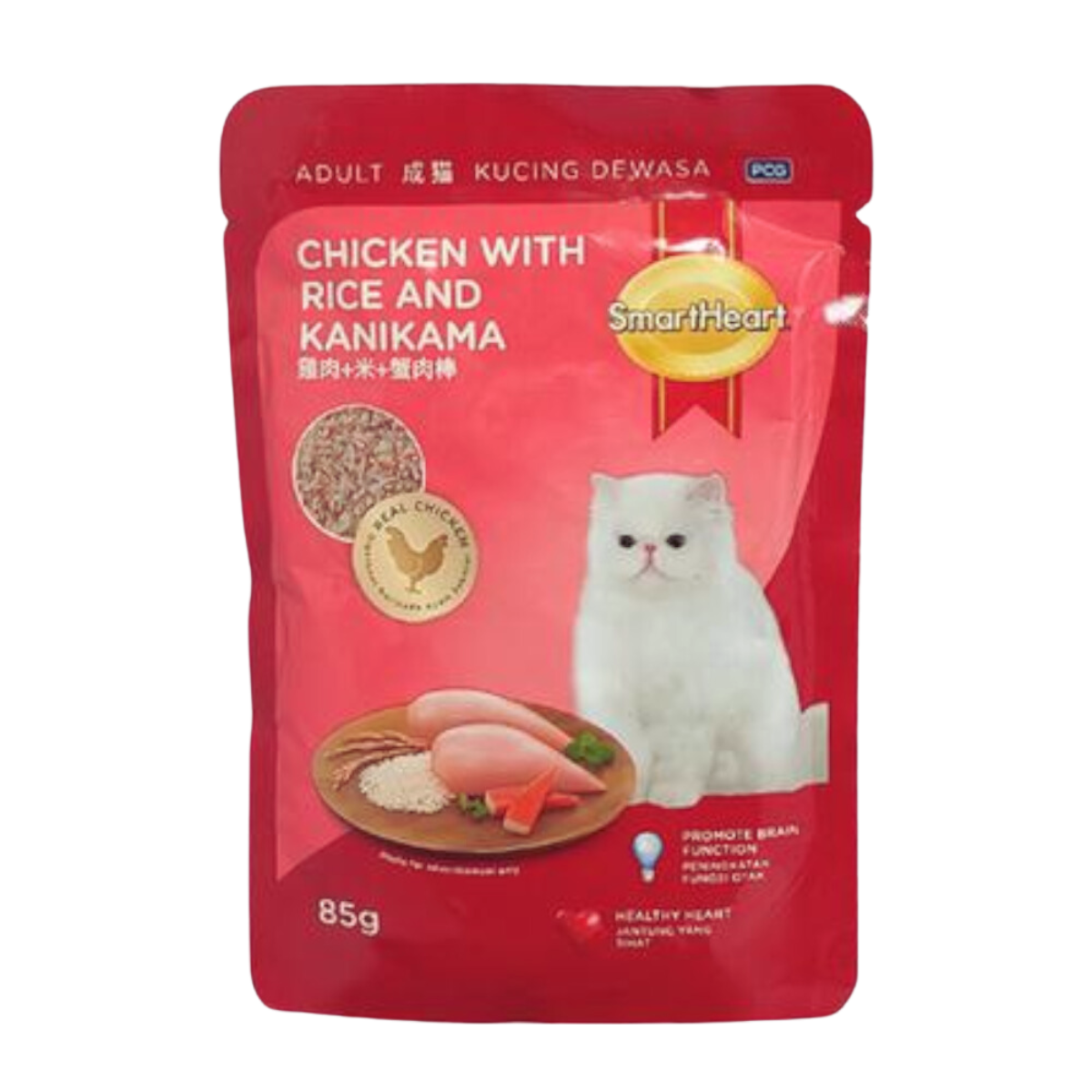 Treat your cat to the indulgence they deserve while ensuring their health is always a priority. SmartHeart Cat Pouch Chicken with Rice & Kanikama—the perfect blend of flavor and nutrition in every pouch!